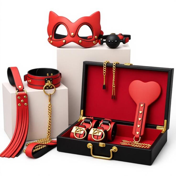 طقم ليلة السيطرة الكاملة – مجموعة قيود سادية جلدية فاخرة لعلاقة أكثر جرأة