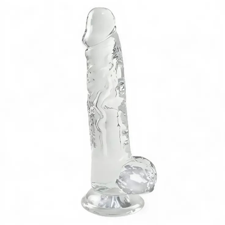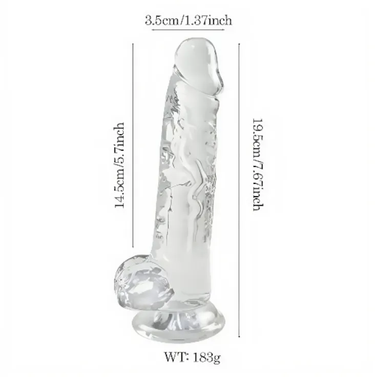 قضيب صناعي زجاجي شفاف بتصميم واقعي وقاعدة تثبيت للبالغين – ألعاب زوجية