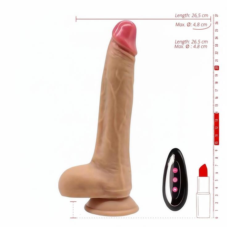 قضيب صناعي هزاز لاسلكي متطور، يتميز بمقاس 26 سم وتصميم واقعي للغاية مع ملمس سيليكون طبي ناعم، يوفر حرية حركة كاملة وجودة ألمانية مضمونة.