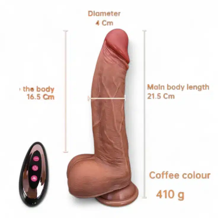قضيب صناعي هزاز بتصميم واقعي ولون لحمي طبيعي، يتميز بمقاس 21.5 سم وقاعدة تثبيت شفط قوية للاستخدام الحر، مع ريموت تحكم لاسلكي وجودة ألمانية فائقة.